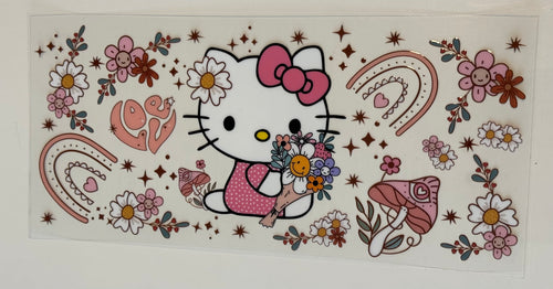 UV DTF - Pink Hello Kitty Floral Love Inspired - 16oz Libby Can